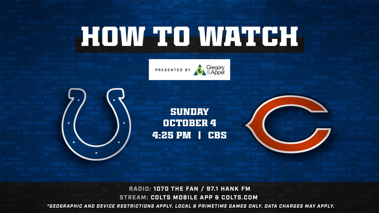 Indianapolis Colts At Chicago Bears Week 4 Kicks Off At 4 25 P M Et This Sunday And Is Available To Watch Locally On Cbs The Colts Mobile App And Colts Com Mobile Website Safari